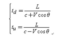 其中:c是超聲波在非流動(dòng)介質(zhì)中的聲速,V是流體介質(zhì)的流動(dòng)速度,tu和td之間的差為: